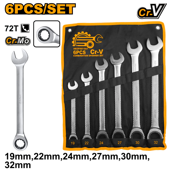 | 6pcs Ratchet Spanner Set Size:19-32mm 19mm,22mm,24mm,27mm,30mm,32mm |