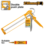 | 9″ caulking gun Aluminum handle Length:230mm Double push plate With needle Thickness:2.2mm Diameter:55mm Packed by paper card |