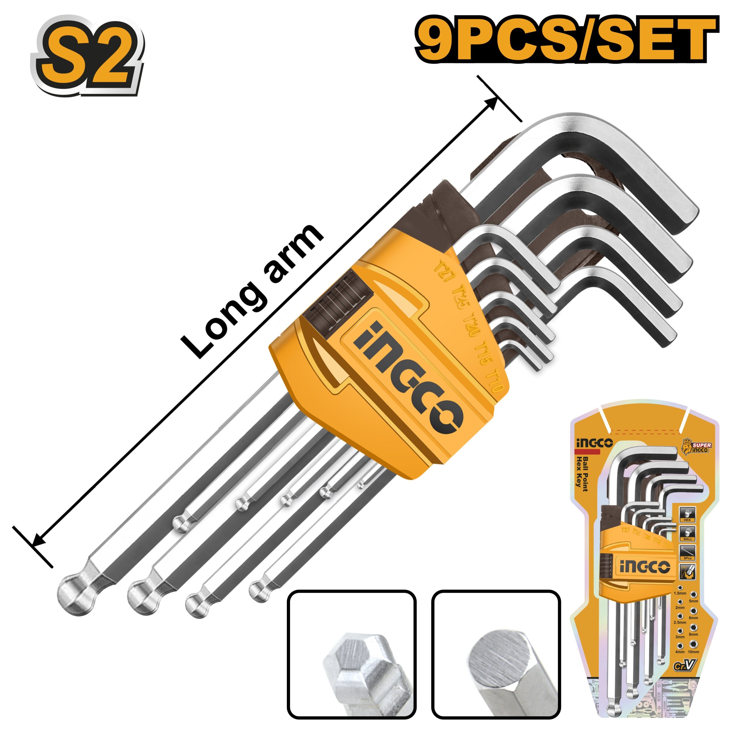 Ingco “9pcs ball point hex key set Material:Cr-V