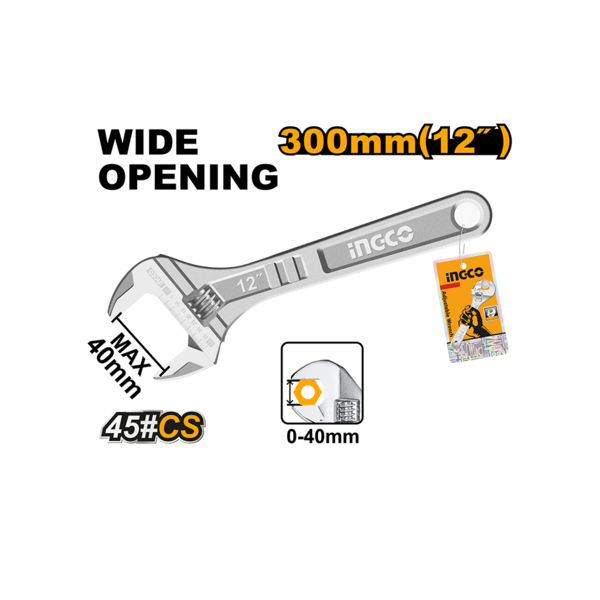 Be the first to review “Ingco Adjustable wrench Length:300mm(12″)”