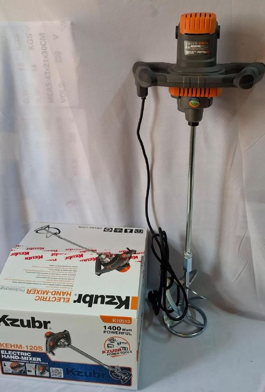 Kzubr KEHM-120S electric hand-mixer designed for mixing construction materials such as paint, cement, and plaster.